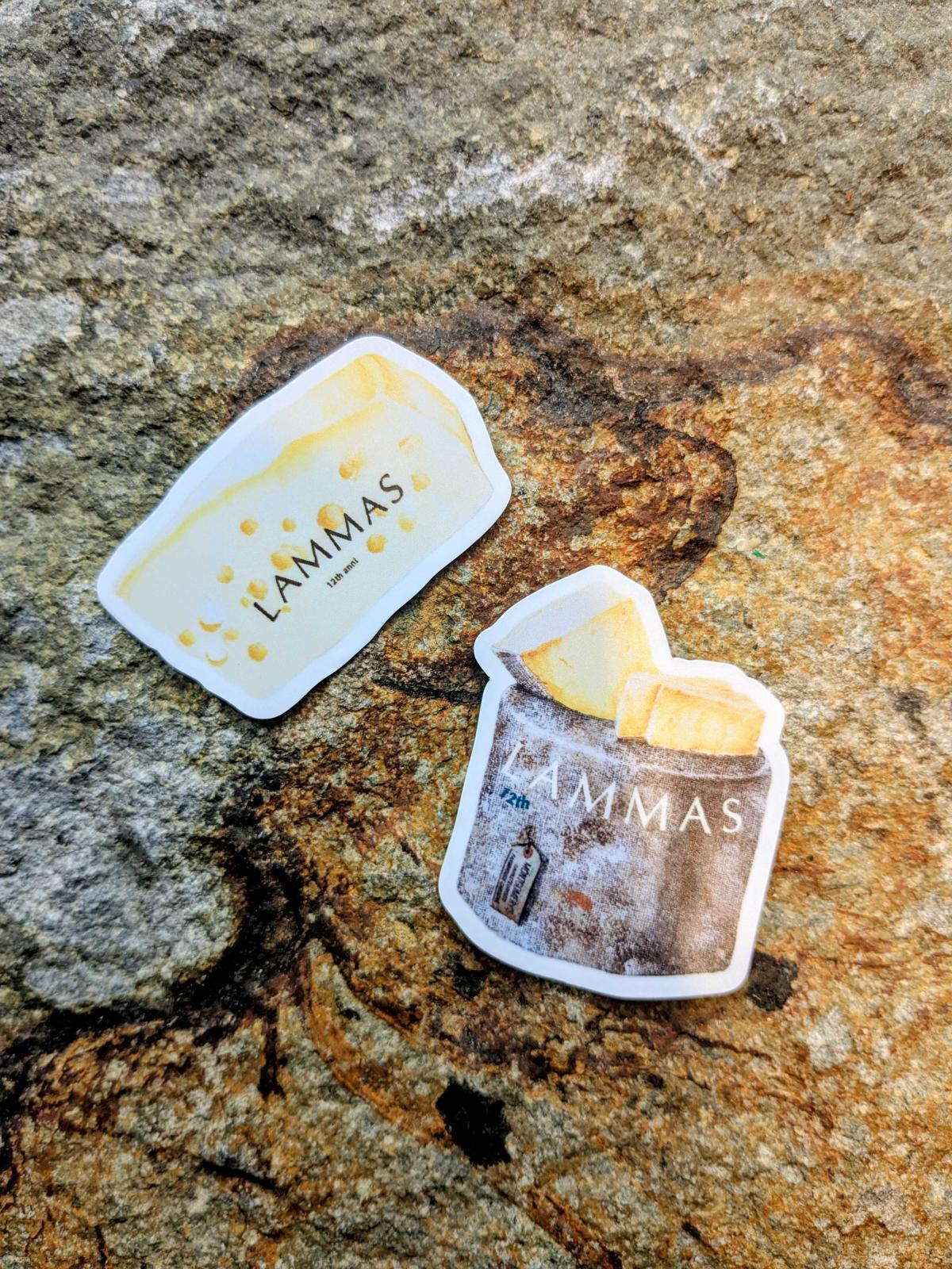 「スタンプラリーカード」と「LAMMASオリジナルステッカー」をお渡しします。
