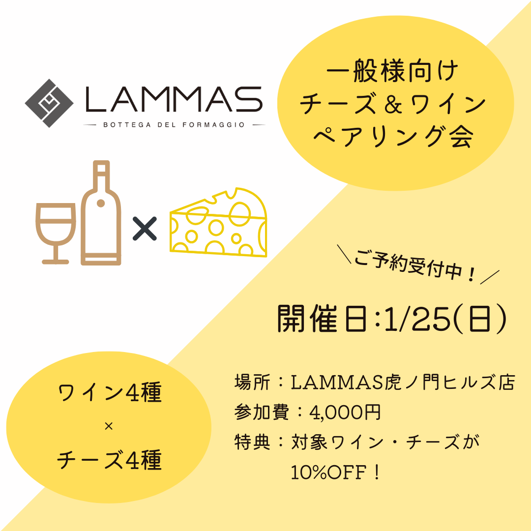 【LAMMAS チーズ&ワインペアリング会】を1月25日(日)に開催いたします!