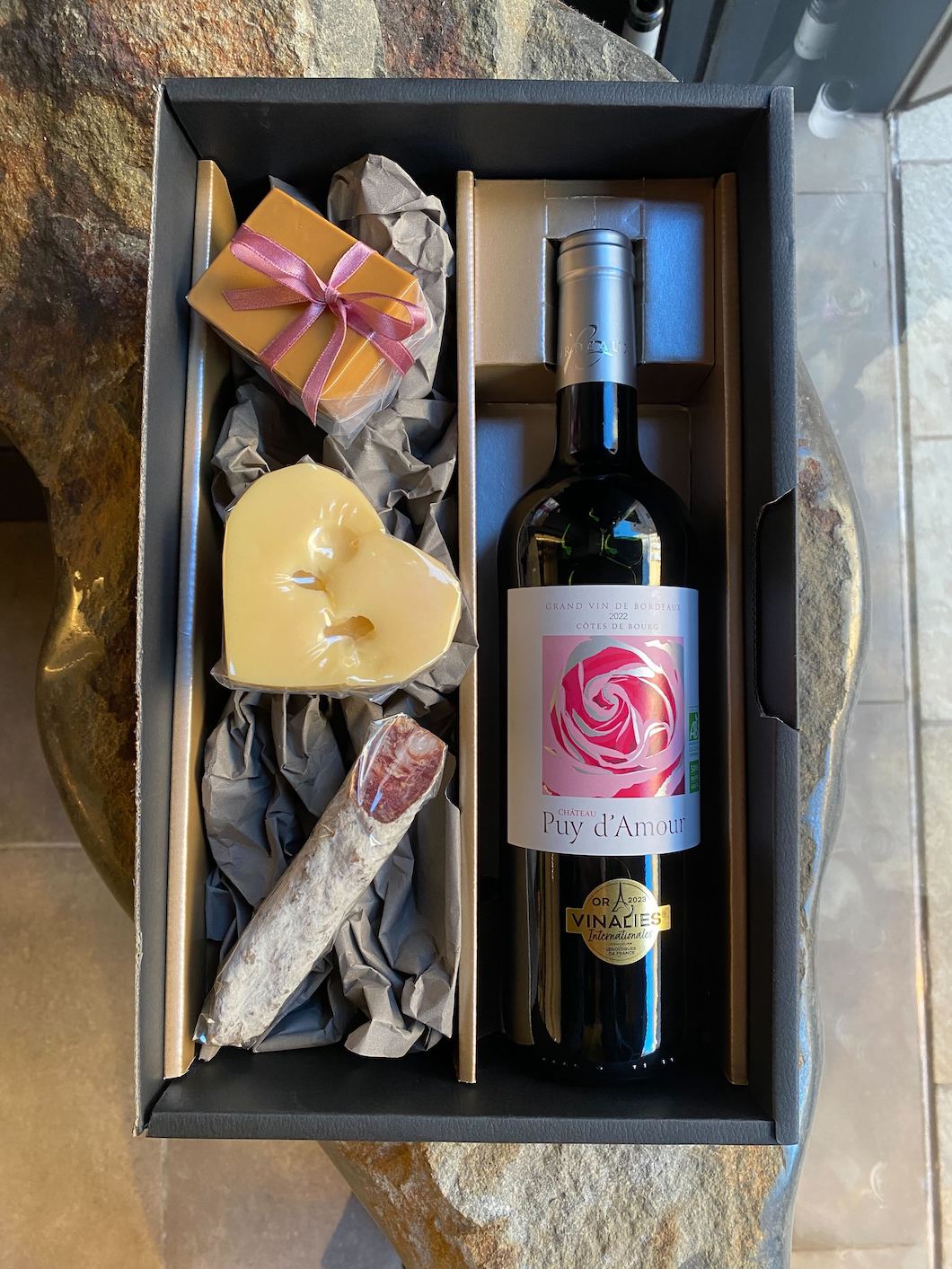 上記3点+ワインが当店オリジナルのギフトBOXに入ります。