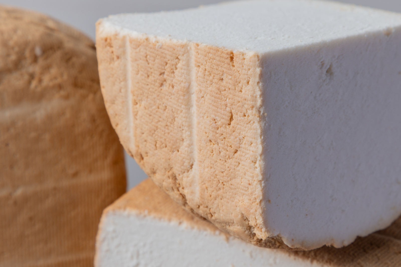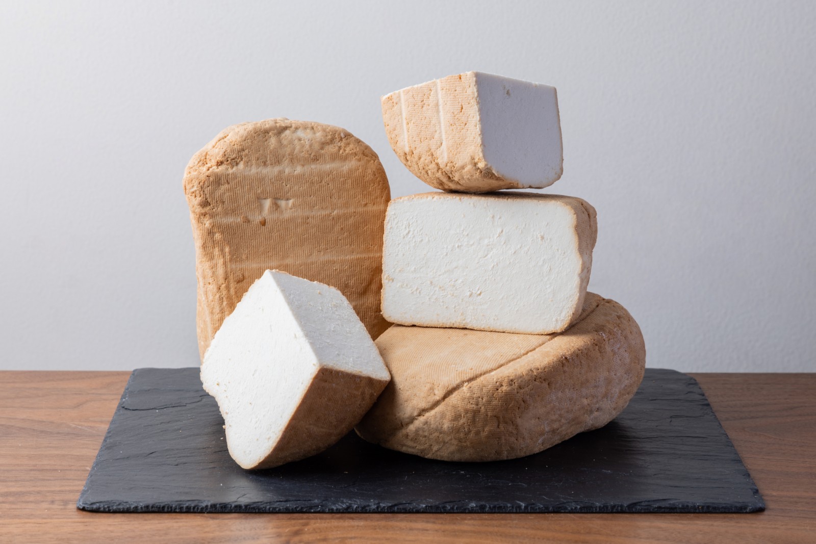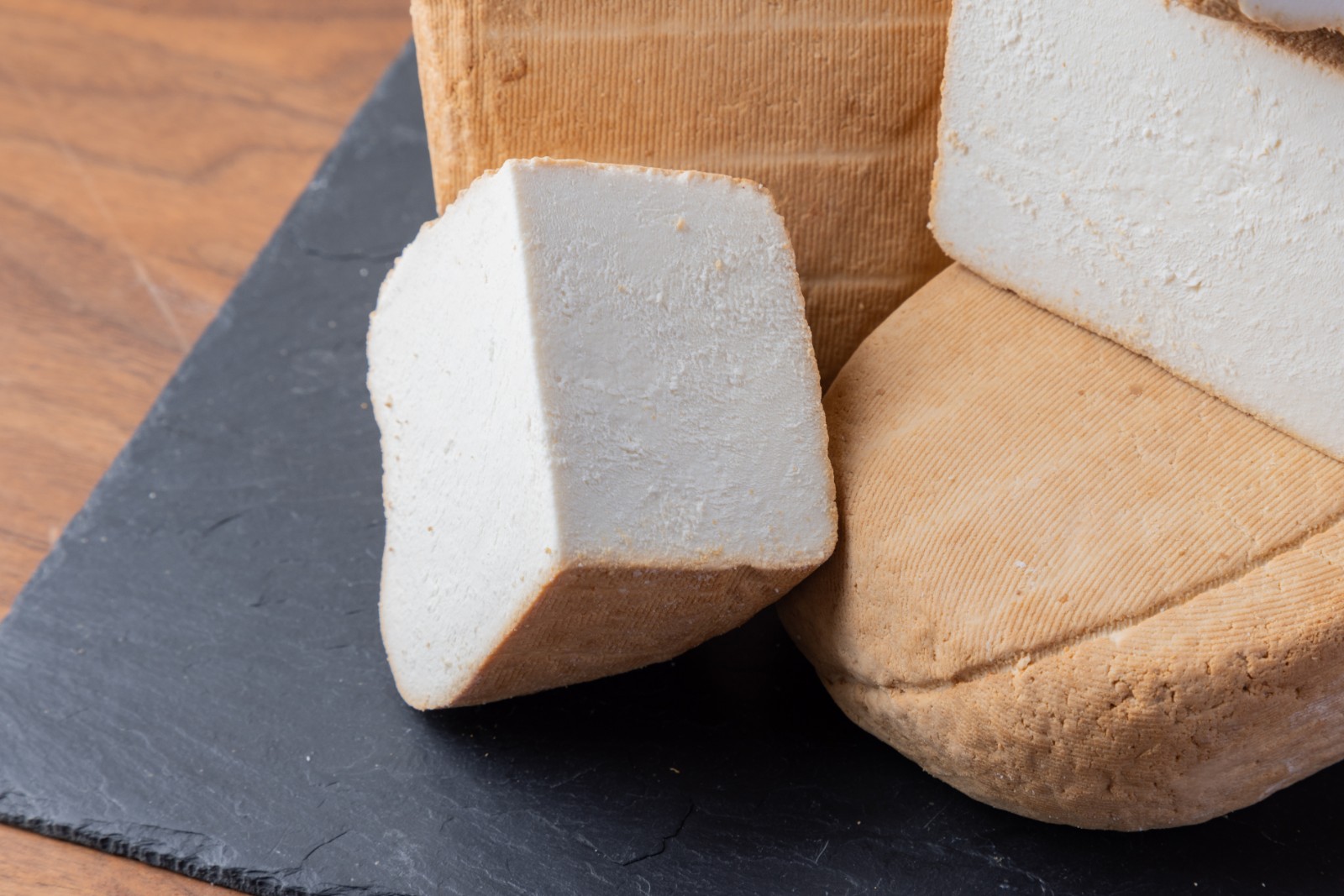 【リコッタ・アフミカータ】は岩のような形とオレンジ色から褐色の表皮、真っ白な生地が特徴的なチーズです。